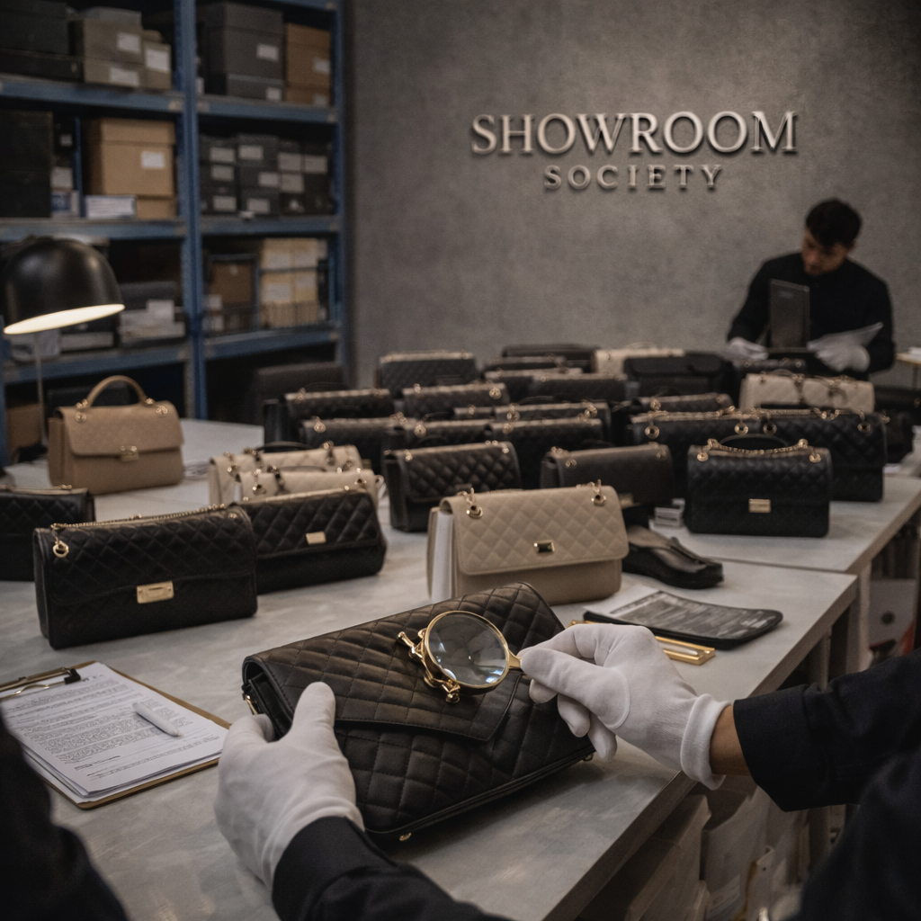 Each bag receives a single Showroom Society Seal as part of our final verification process.