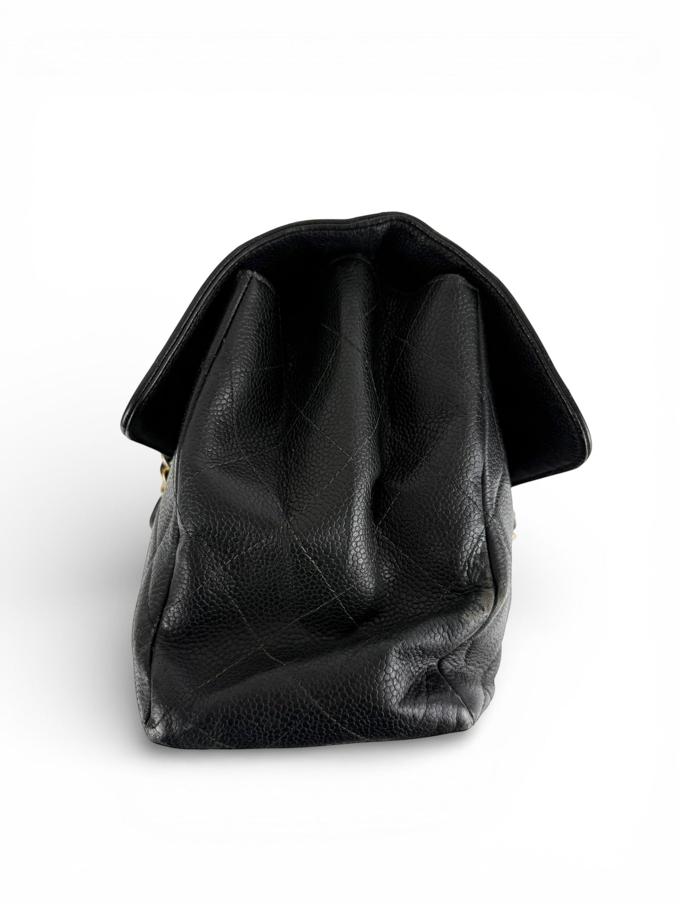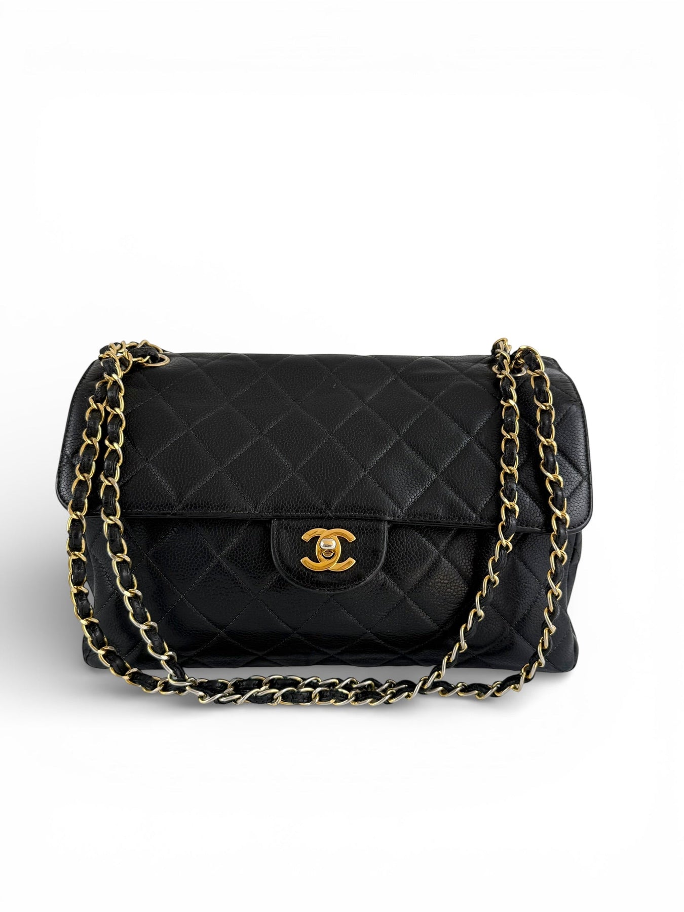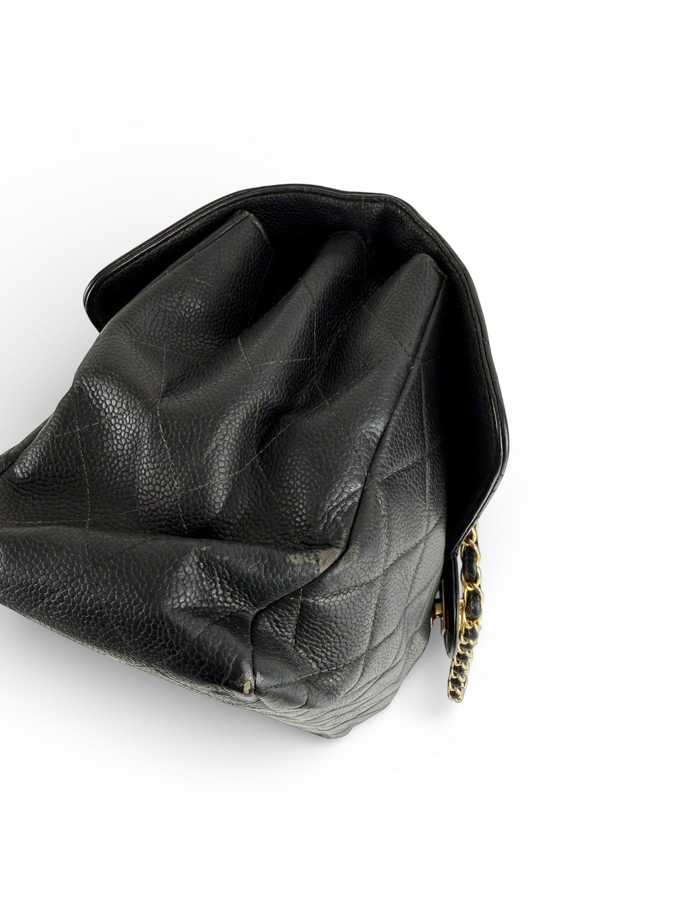 Vintage 90s Chanel Double Sided Black Caviar 24K GHW 30cm Classic Flap Bag